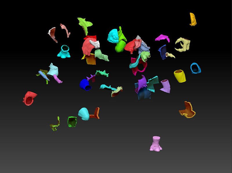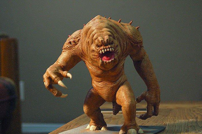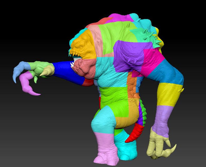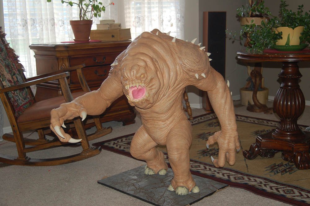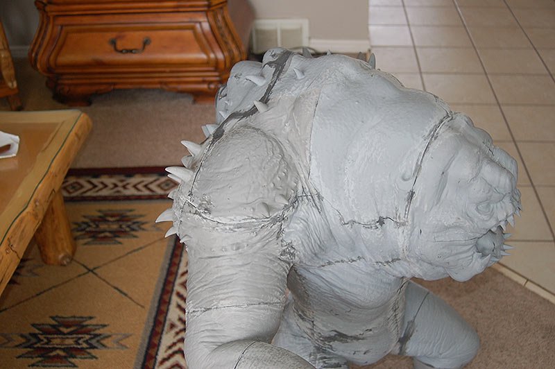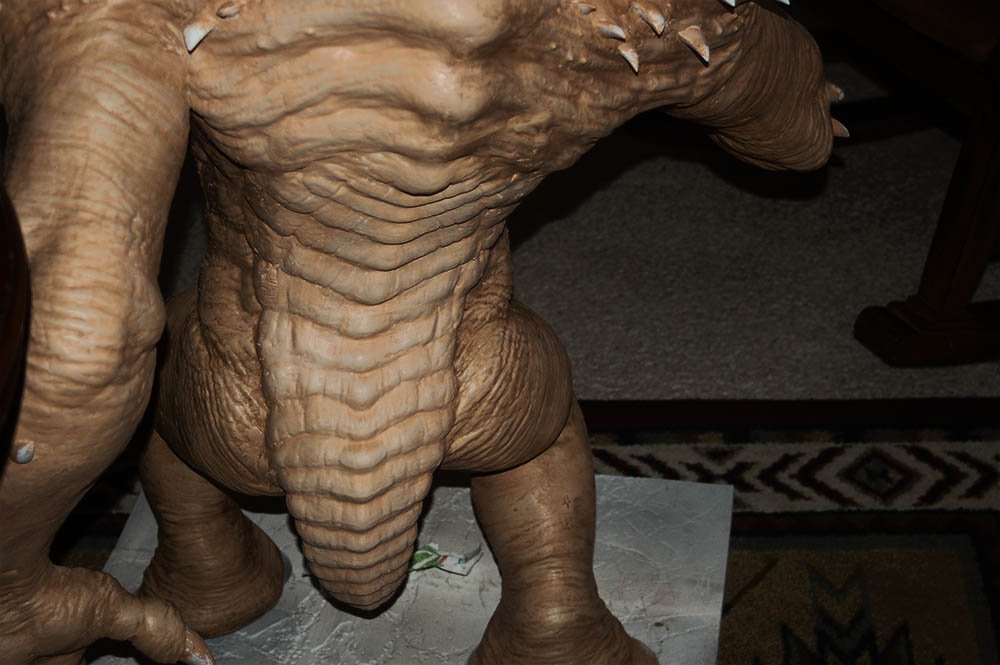 This is the 8 inch version of the rancor model. The following pictures show some of the process of going from a one piece model to a 40 piece model designed to be printed then assembled. The model stands 36 inches tall.