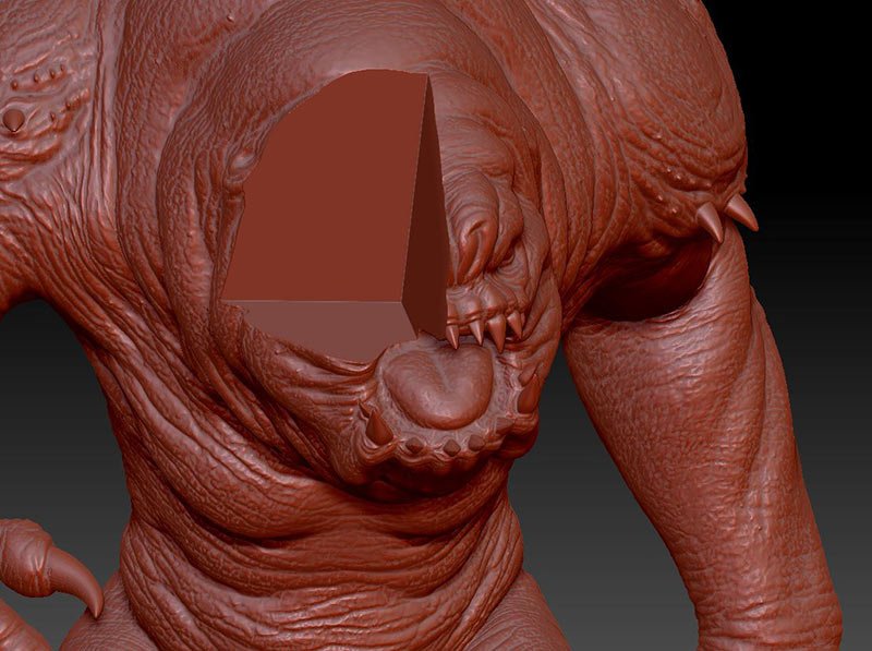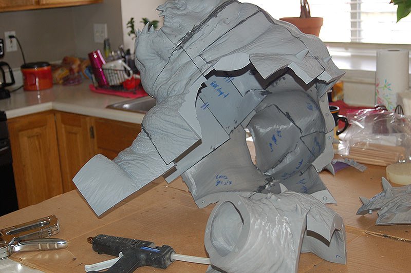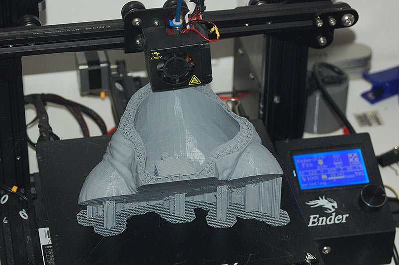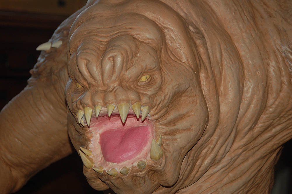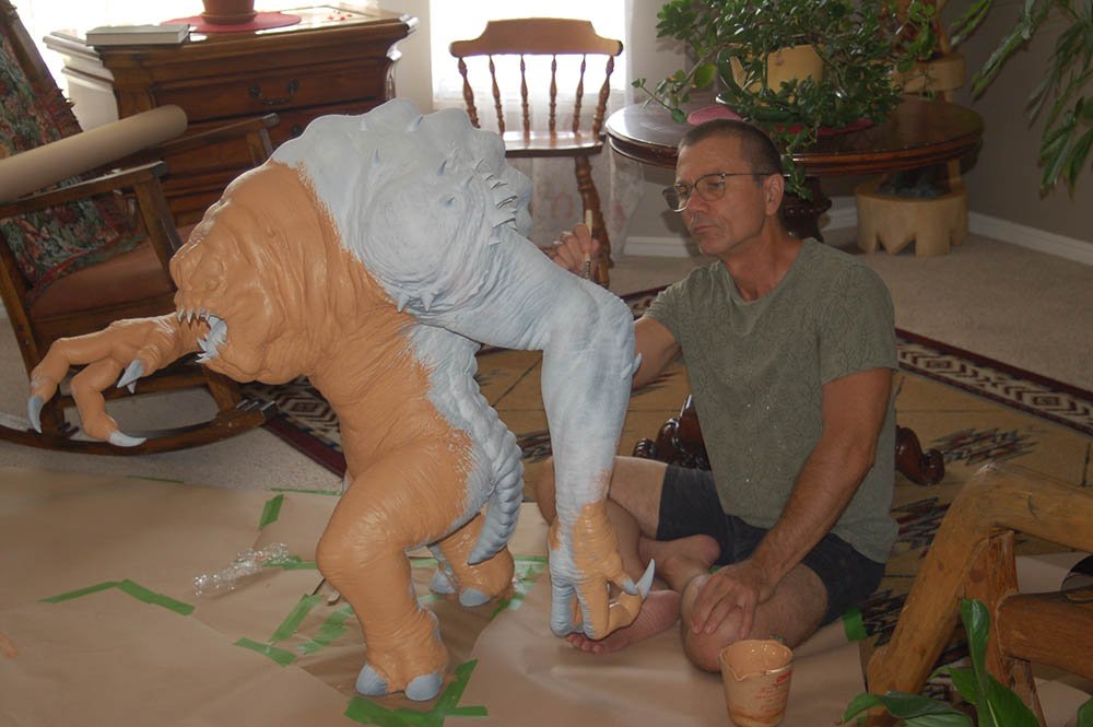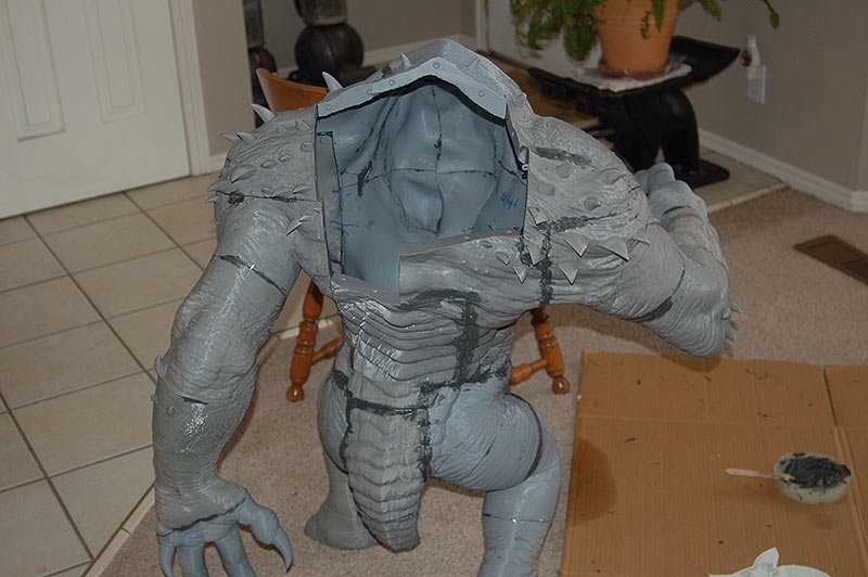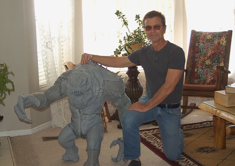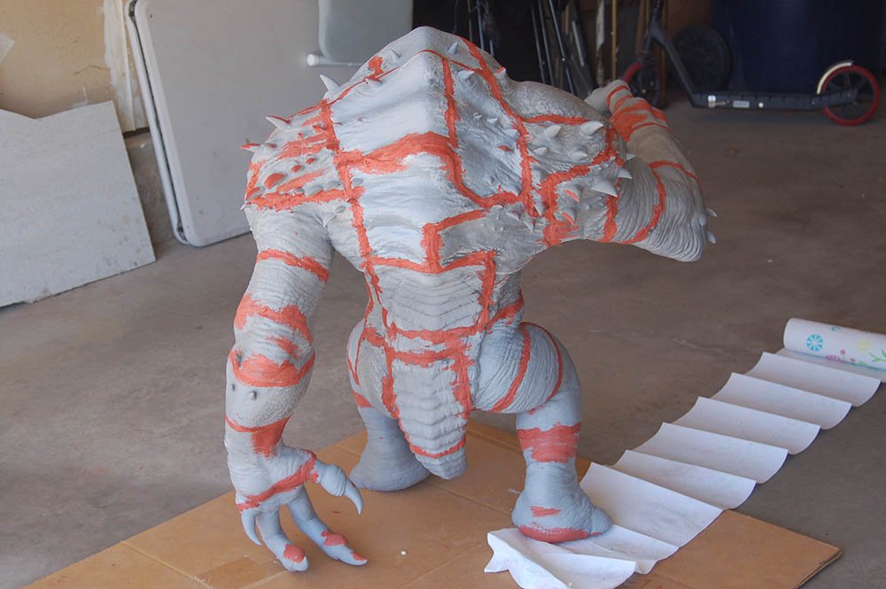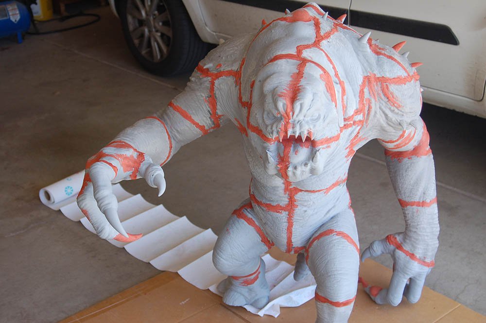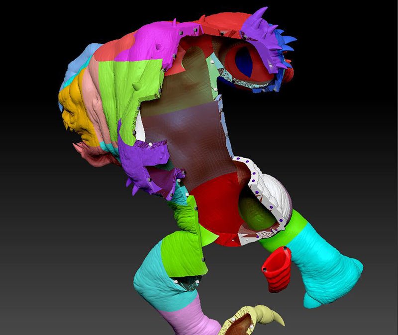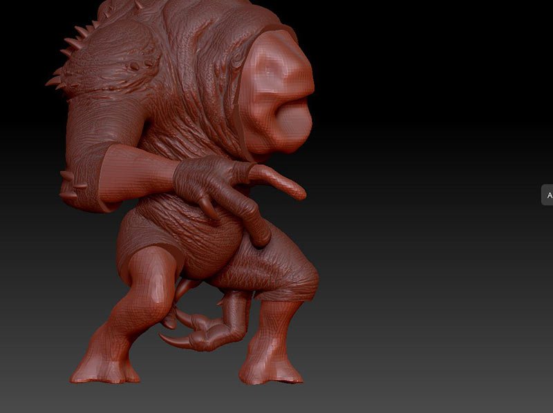 This is the 8 inch version of the rancor model. The following pictures show some of the process of going from a one piece model to a 40 piece model designed to be printed then assembled. The model stands 36 inches tall.